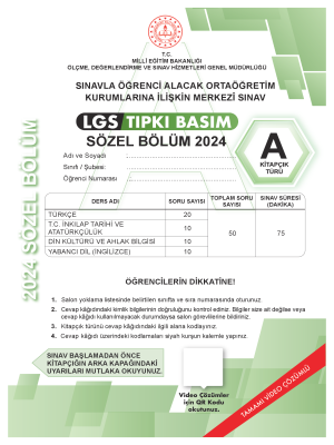 LGS SÖZEL DENEME - A KİTAPÇIĞI